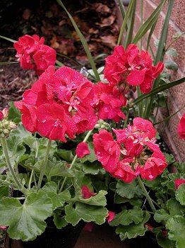Geraniums, vincas, and spikes (R) are what I got yesterday from the flower sale